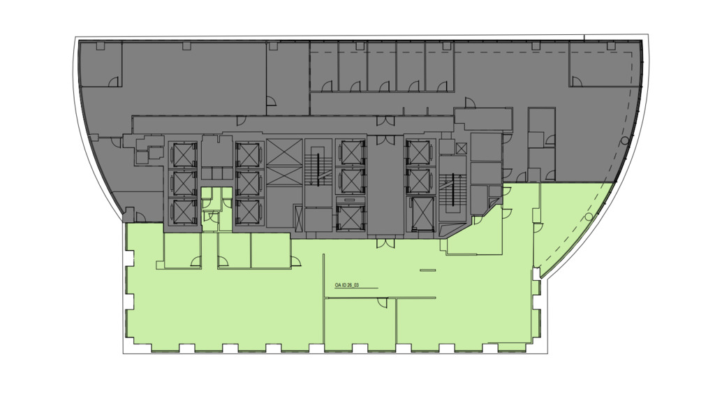 The office is located on the 26th floor of the building and is open-plan. An office divided into two open space zones, an office, meeting rooms, a kitchenette. The layout of the office will be tailored to the individual needs of the tenant. The landlord proposes a budget for finishing the space and financial incentives in the form of rental holidays. Possibility to rent several parking spaces (150 EUR/space).