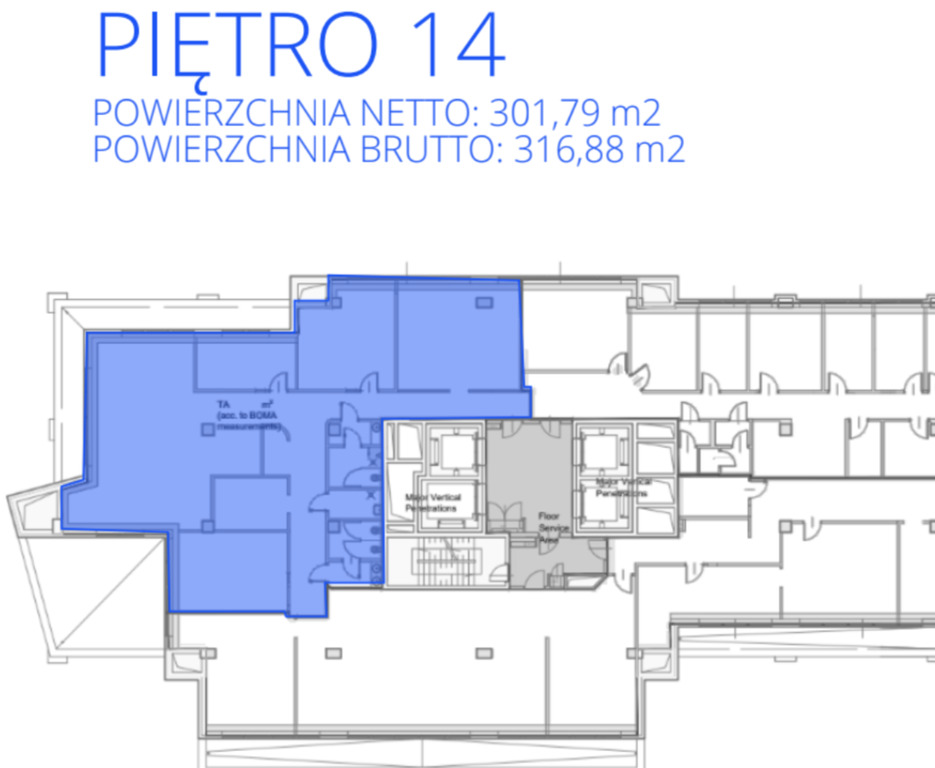 Office in Warsaw's Ochota district in a cubicle layout on the 14th floor of the building. The office layout can be adjusted to the individual needs of the tenant. The landlord offers a budget for finishing the space and financial incentives in the form of rent holidays.
