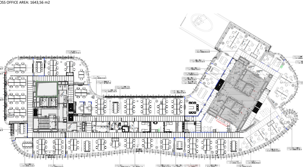 Office space located on the 2nd floor. Office in a mixed layout. It is possible to change the layout and arrangement to suit the needs of the future tenant.