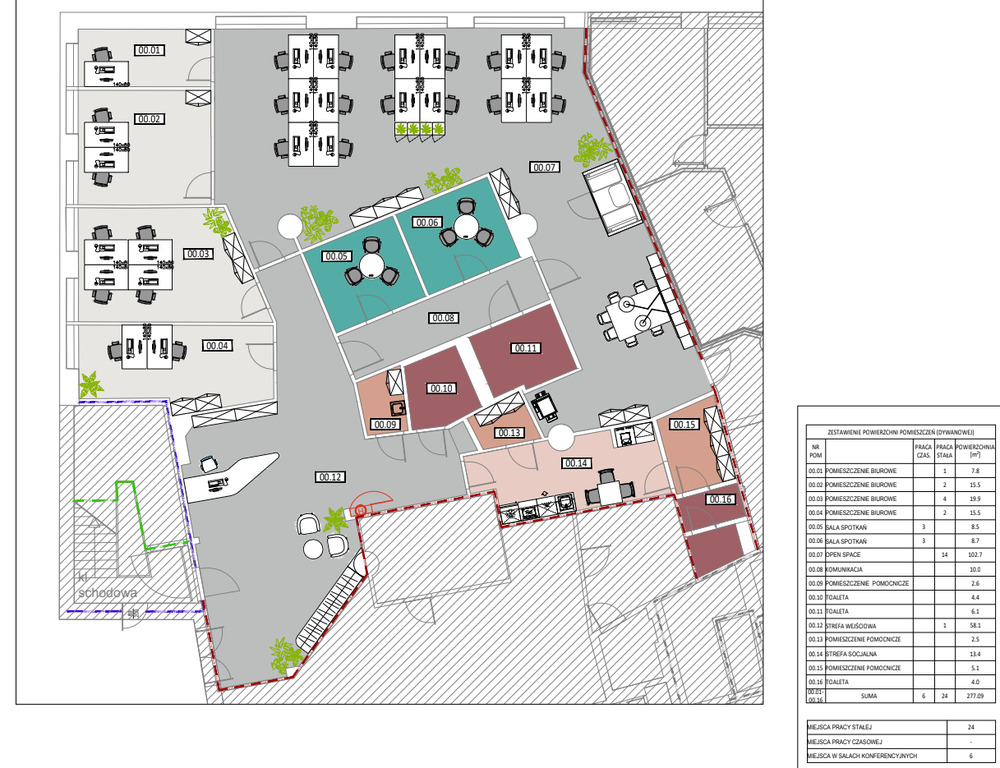 Premises on the ground floor with direct entrance from the sidewalk on the side of Niepodległości Avenue (right next to the entrance from Wierzbno Metro). Premises in a study layout divided into 4 study rooms (with independent ventilation), exercise room, changing rooms, reception, kitchenette, toilets (one with shower). Height of rooms approx. 3.5 m.