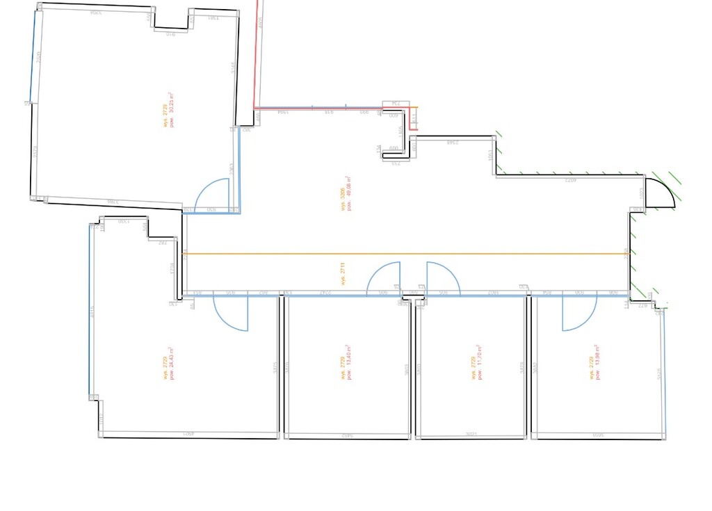 Biuro do wydzielenia z większej powierzchni. Układ zostanie dostosowany do potrzeb przyszłego najemcy. Obecnie biuro z podziałem na 3 pomieszczenia, dwie salki do spotkań, kuchnię (właściciel ją wybuduje dla najemcy) oraz recepcję. Toalety znajdują się na częściach wspólnych. Możliwość wynajęcia miejsc parkingowych. Zdjęcia przedstawiają proponowane biuro.