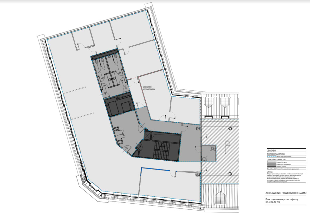 Biuro mieści się na czwartym, ostatnim piętrze zabytkowej kamienicy. Powierzchnia zostanie odświeżona i zaaranżowana według potrzeb przyszłego najemcy - włącznie z jej nowym podziałem. W zależności od zakresu prac remontowych – rearanżacja potrwa ok. 3-4 mies.