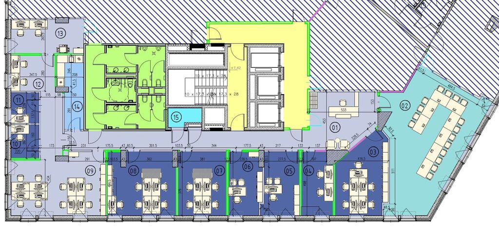 Biuro na 2 piętrze w układzie mieszanym z podziałem na większe i mniejsze gabinety. Biuro zwalnia się w styczniu 2026 roku.