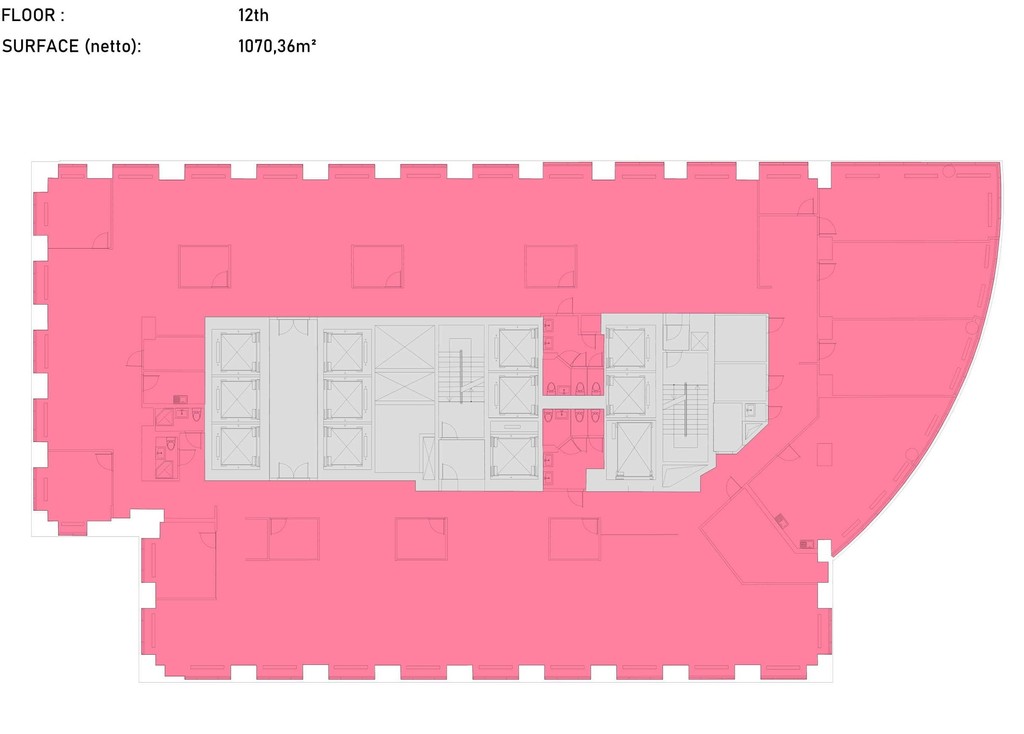 Powierzchnie biurowe zlokalizowane na trzech piętrach (11, 12 oraz 23 piętrze). Powierzchnia na jednym piętrze to ok 1100 mkw. Wykończone, z opcją szybkiego wejścia, w układzie otwartym. Istnieje możliwość dostosowania układu do potrzeb przyszłego najemcy.