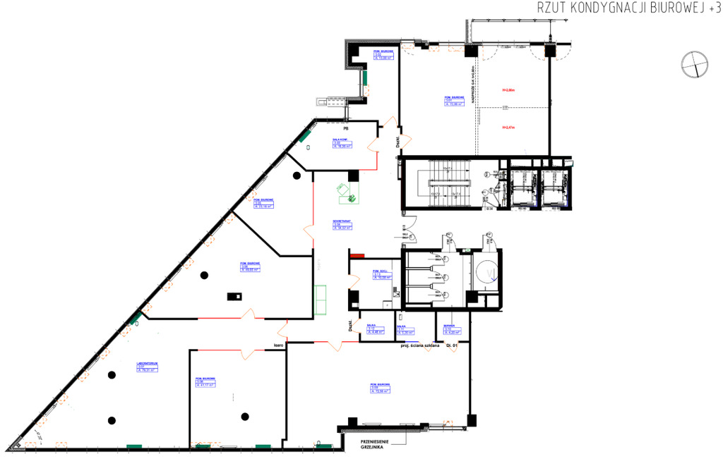 Gotowy do wejścia lokal biurowy o powierzchni 456m2 zlokalizowany na III piętrze budynku mieszkalno-biurowego w centrum miasta. Przestrzeń w układzie mieszanym, składająca się z: trzech openspace'ów, trzech gabinetów, dwóch salek spotkań, sali konferencyjnej, kuchni serwerowni oraz przestrzeni chill wyposażonej w rzutnik, kanapy, stół bilardowy oraz piłkarzyki. Toalety znajdują się w częściach wspólnych. Na powierzchni ponadto znajduje się budka akustyczna, pozwalająca na komfortowe prowadzenie rozmów i spotkań online.