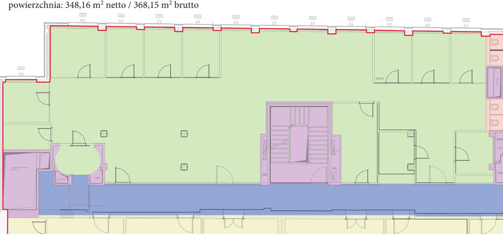 Powierzchnia najmu zaznaczona jest na planie czerwoną obwódką.