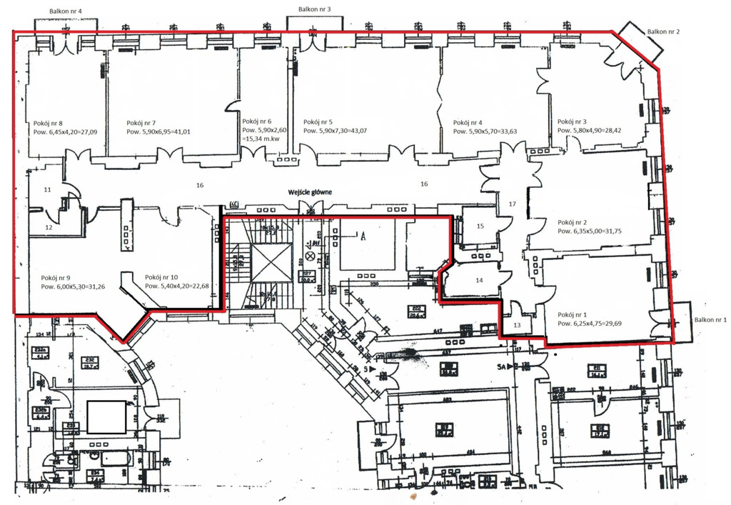 Klimatyczne biuro znajduje się na 2 piętrze w kamienicy z windą. Powierzchnia podzielona jest na 10 pomieszczeń do pracy biurowej, 2 aneksy kuchenne, 2 zestawy łazienek, pomieszczenie gospodarze/serwerownie. Z kilku pokoi jest wyjście na balkon. Przestrzeń jest znakomicie doświetlona oraz wysoka na prawie 4 metry. Istnieje możliwość umeblowania biura oraz pełnego serwisu powierzchni po stronie wynajmującego w tym opłat za zużycie energii elektrycznej, internetu, sprzątania powierzchni. Wysokość pomieszczeń 400cm.