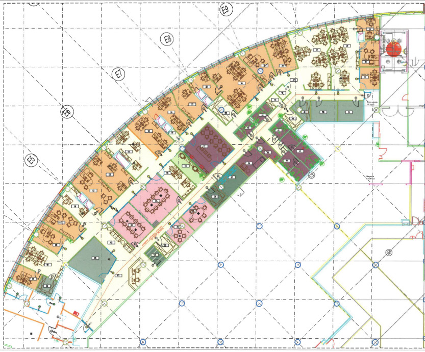 Powierzchnia biurowa w układzie mieszanym z przeważającym podziałem na pokoje. Lokal można dowolnie aranżować według własnych potrzeb. Dużym atutem jest wysokość pomieszczeń (ponad 3,5 m).