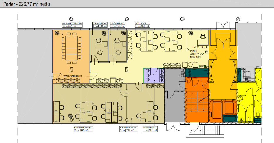 Składa się z 4 gabinetów, open space, sali konferencyjnej, kuchni i recepcji.